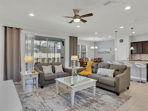 Welcome to your dream vacation and stunning fully furnished 5 bedroom, 4 bathroom pool home located on a corner lot in the highly sought after Windsor at Westside Resort. Perfectly designed for indoor/outdoor entertaining and is excellent income producing short-term rental or a fantastic personal retreat. Designed with lots of space in mind this two story layout and open floor plan is the perfect getaway. The home sleeps up to 14 comfortably and features large living areas with plenty of space for relaxing. The first floor master bedroom offers privacy and space, the kitchen has granite countertops and stainless steel appliances with a nice island opening to the dining room and living space. Enjoy the gated resort style amenities with the zero entry point pool, water slide, lazy river, and water playground. It boasts a clubhouse, a lake with a pier, fitness center, volleyball courts, sundry shop and video arcade. This is an ideal location as it offers easy access to Disney World attractions and many other theme parks in the area.