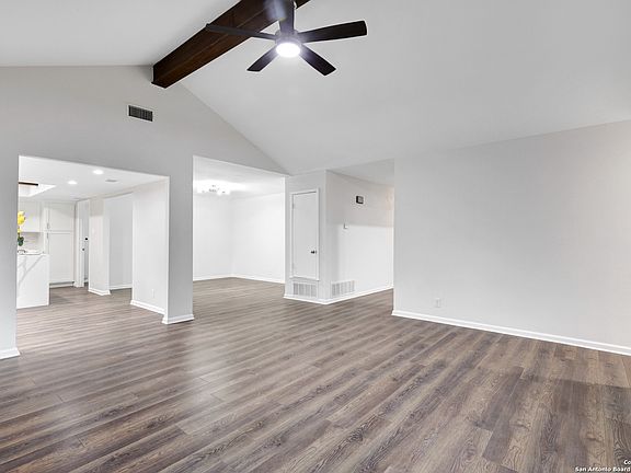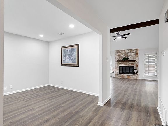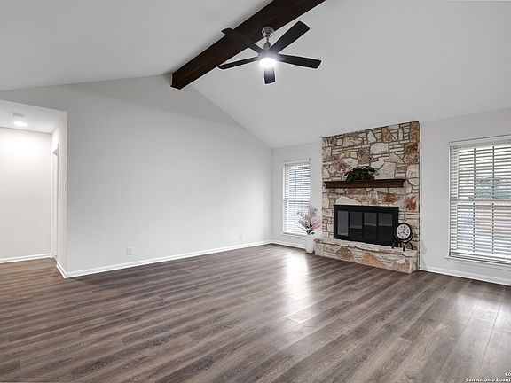 Welcome Home! Nestled in the quiet and highly sought-after Oak Hill Estates neighborhood, this beautifully updated 3-bedroom, 2 1/2-bath home offers 2,092 sqft of living space designed for comfort and style. The home boasts brand-new flooring throughout, including plush carpet in the bedrooms and high-end luxury vinyl flooring in the main living areas, giving the home a fresh, welcoming feel. The heart of the home is the kitchen, which has been completely transformed with custom cabinetry, stunning quartz countertops, and a striking waterfall island. New stainless steel appliances add a touch of elegance, making this kitchen both functional and stylish. The open-concept design allows for easy flow from the spacious living room to the dining area, making it ideal for both everyday living and entertaining guests. The professionally painted interior and exterior create a clean and contemporary look, while the Spanish-style clay roof adds both charm and durability to the exterior. Newer double-pane windows throughout the home improve energy efficiency and offer a quiet, comfortable atmosphere. Enjoy the expansive backyard, which offers plenty of space for outdoor activities, gardening, or relaxing in your private oasis. The newly upgraded epoxy flooring in the garage provides a durable and easy-to-maintain surface that's perfect for storage or a home workshop. This home is located just minutes away from Highways 281, Wurzbach Parkway, and 1604, offering easy access to major roads and highways for quick commuting. McAllister Park is nearby, providing walking trails and plenty of outdoor recreational options. You'll also find a variety of shopping and dining options just around the corner, including HEB and Target, making this a truly convenient location. Plus, the home is in the top-rated Northeast School District, making it an ideal choice for families. With its modern upgrades, spacious living areas, and fantastic location, this Oak Hill Estates home is a rare find. Don't miss the chance to make this beautiful property yours!