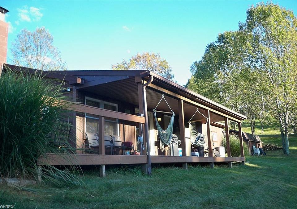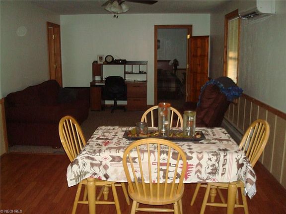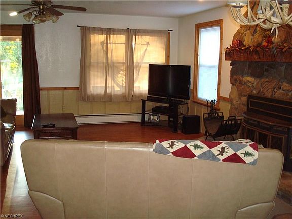 6 acres of privacy! Hunt and fish on your own property. Stocked pond. Two-bedroom open concept home with beautiful stone fireplace. Many updates including windows, doors, furnace and central air.