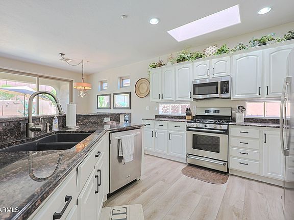 Pack your bags & toothbrush, because that is all you will need to enjoy this furnished vacation rental in the guard-gated Anthem Country Club community! This remodeled 2 bedroom, 2 bath home lives very comfortably. Backyard features heated salt water PebbleTec pool w/ cascading spa, extended travertine paver patio, misters, BBQ gas grill & gas firepit! Luxury vinyl plank flooring, tall base boards & fresh paint. Kitchen includes stainless appliances with gas range, granite counters, white cabinetry & pantry. Split bedroom floor plan. Main bedroom is oversized with dual sink vanity, walk-in closet & spa-like walk-in shower. One month minimum. $350/month utility cap for gas, water/sewer & electricity. $2,700/mon June-Oct, $5,000/mon Nov-May. Streaming TV only!