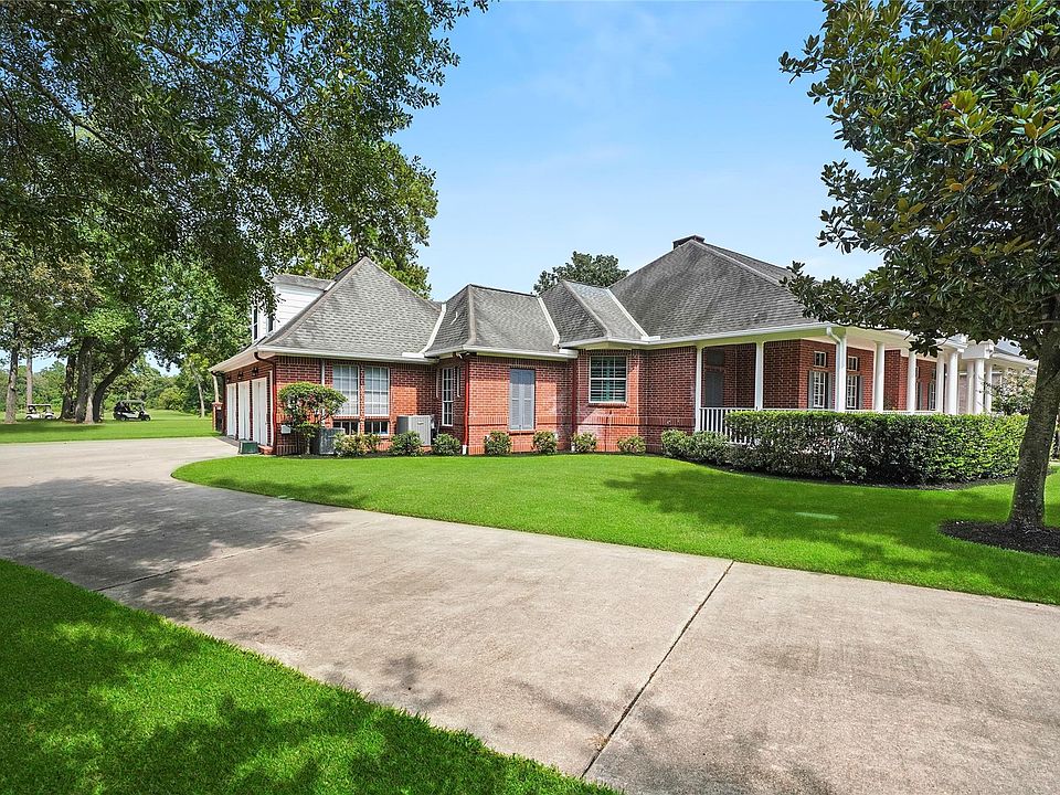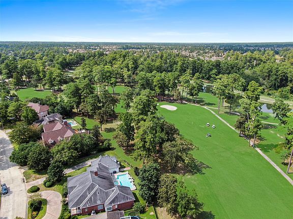 Exclusive one story on the 10th hole of the Golf Course at Willow Creek Gold Club Community! Has a large open-concept with over $50k worth of upgrades including a new roof just put on! A Vivint alarm system with camera which will stay. The garage is also AC and heat. Recently remodeled with 3 bedrooms and 3 full baths and 1 half bath, has a double-sided fireplace for both living areas. Has a gourmet kitchen with all stainless appliances. Has a double convection oven, convection microwave, gas cooktop for bakers paradise! Quartz countertops, under the counter lights, and the fridge will stay! Lovey circle driveway, with another driveway on the side to garage. Peaceful backyard with a huge covered patio, swimming pool with spa and it is all heated for entertaining, overlooking the fairway. Easy access to Grand Parkway/Exxon Mobil Campus and new HP in the Woodlands.
