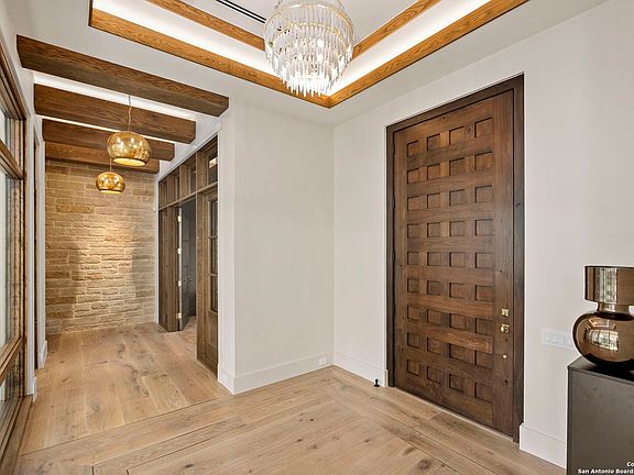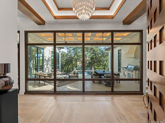 Jim Boles' Santa Barbara Transitional Masterpiece - 24627 Cliff Line is the latest architectural gem crafted by renowned builder, Jim Boles. This newly constructed home is a testament to the perfect fusion of traditional Santa Barbara charm with contemporary transitional design offering thoughtful and luxurious living. One-of-a-kind detail at every turn with accent lighting throughout, this home was crafted for the discerning buyer. This estate offers a master retreat fit for "vacation mode" with floor to ceiling windows making the room feel as if you're "in a tree house", a bathroom retreat complete with a soaking tub that overlooks a wall of glass windows, and a master closet fit for a queen complete with custom cabinetry and accent lighting. Three additional bedrooms each with their own bathroom compliment this home. Two of the bedrooms are up with their own loft/flex space. The dedicated office/library is adorned with a curtain wall of glass and custom french doors. The living room fireplace is the focal point of the space accented with a statement chandelier. Opposite the living area is a "flex space," and a dining room with floor to ceiling windows overlooking a 40-foot bluff. The kitchen boasts a custom wood inlay ceiling treatment, gas cooking, and a walk-in butler pantry. Experience alfresco dining complete with an outdoor kitchen. A thoughtfully designed pool completes the outdoor experience, inviting you to unwind and refresh. With its blend of traditional and contemporary elements, this estate offers a unique lifestyle opportunity for discerning homeowners. Easy access to San Antonio, Boerne and surrounding areas - you will be enjoying award winning shops and restaurants within minutes. Low Voltage Equipment is not included, but is negotiable.