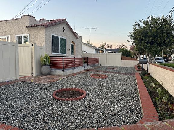 Welcome to this beautiful 936 sq. ft. single- story front unit features 2 spacious bedrooms and 2 bathrooms in a well-designed layout. The open dining and living areas extend seamlessly to the side yard, creating an ideal space for entertaining or enjoying refreshing breezes. Recent renovated kitchen with a large farmhouse sink, solid wood cabinetry, quartz countertop, and stainless -steel appliances. Upgraded bathrooms, build- in laundry area with brand-new washer & dryer. Parking is convenient with an auto gate driveway. Located in a quiet street. Convenient location walking distance to local schools and nearby shopping center. An excellent opportunity to enjoy a home filled with natural light and comfort.