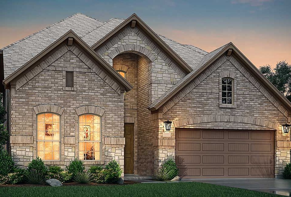 The spacious two-story Luxor floor plan by Village Builders features a welcoming entry foyer, a formal dining room, an island kitchen with large walk-in pantry and breakfast room with access to a covered rear patio, an open family room with the option to add a corner fireplace, a first floor master bedroom with en suite master bathroom with dual sinks, separate tub and shower, private toilet enclosure, and spacious master closet. The second floor features a generous game room. The Luxor floor plan also offers the options to add a study at the dining room, dedicated media room or fourth bedroom and full bath on the second floor, and an extended covered rear patio.
