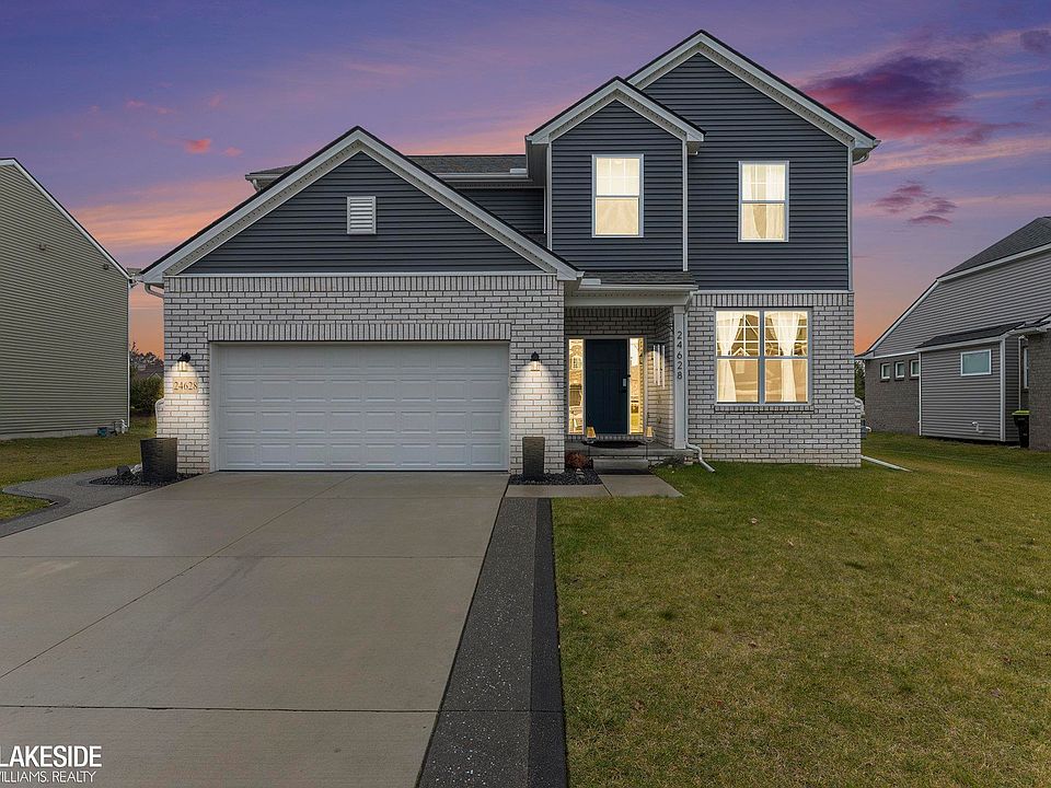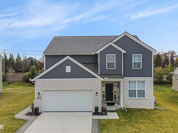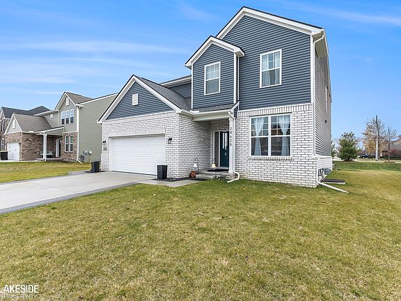 **OPEN HOUSE SATURDAY 11/22 12-3pm** Welcome to “The Austin”—a stunning, better-than-new construction home loaded with over $150,000 in upgrades during the 2022 build plus additional owner improvements. Skip the long wait for new construction—this immaculate, move-in-ready home is available NOW. Step inside to a bright and versatile flex room, perfect for a home office, playroom, or additional sitting area. Continue into the main living space where you’ll find 9 ft. ceilings, new double-padded life-proof carpet, an electric fireplace, and a mounted 80" TV that stays with the sale. The “Ambassador” kitchen is the heart of the home, designed for both elegance and function. Enjoy double wrap-around cabinetry with crown molding, quartz countertops, and a massive center island with sink, dishwasher, and extra storage. Additional kitchen highlights include recessed lighting, a large walk-in pantry, double oven, stainless steel refrigerator, and a dedicated coffee bar. A spacious formal dining area sits just off the back doorwall, creating the perfect flow for entertaining. Head upstairs and follow the custom stairway accent lighting to the 5 spacious bedrooms, all featuring life-proof carpet, along with a convenient second-floor laundry room. The primary suite feels like a retreat with its large walk-in closet, ceramic tile shower, soaking tub, and separate vanity area. The basement offers incredible potential—already equipped with epoxy floors, egress window, bathroom plumbing, and wrapped insulation, it's ready for your finishing touches. The garage is a dream: extra 2 ft. deep, fully drywalled and painted, epoxy flooring, added electrical outlets, and a 220 line for EV charging. Outside, enjoy a beautifully finished aggregate stone patio with blue glow stones throughout the patio and walkway—ideal for hosting gatherings, grilling, or unwinding at the end of the day. Come check it out, you will be glad you did!
