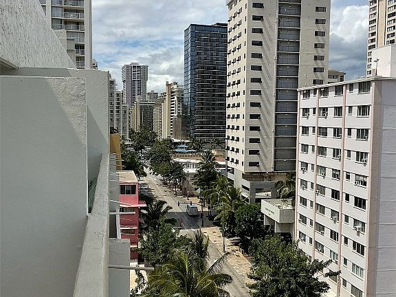 LEGAL SHORT-TERM rental in the middle of Waikiki! Description "From Seller" - The best & coolest corner-studio in Waikiki! This is a rare, unique, one-of-a-kind condo with two good-sized lanais. It is not a typical open-concept studio apartment, as there is a substantial entrance hallway with a wide closet with a decorative, two-color, bi-fold door and a maple, interior shelving unit and enough space to accommodate a full-size laundry cart. The apartment is laid out like a left-flipped F with a separate, long and narrow living area; featuring a galley-kitchen and hidden by a high counter with a sliding glass door leading to the large, northeast-facing (towards the mountain range view!), front lanai with a high privacy wall in the front; and a very high (to the partial ceiling). The compact bathroom with custom-made, cultured-marble, beige with white-marbling shower walls, as is the large, rectangular bathroom sink vanity top is directly behind the kitchen. There is a second, narrower, but adequate side lanai that can accommodate a table and two chairs, facing towards a partial Diamond Head view that allows the apartment to stay “light and bright” most of the day, up until 5 P.M.!