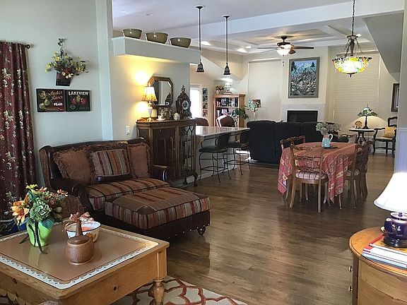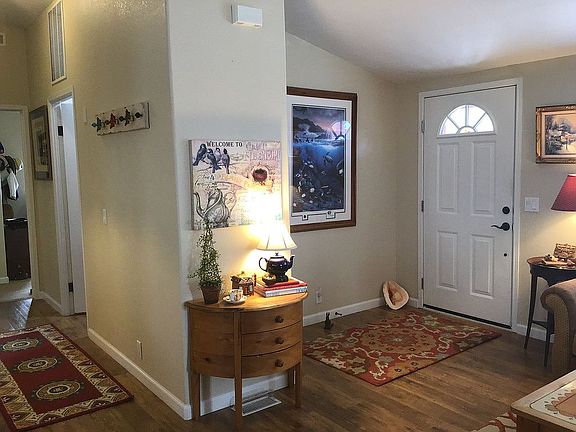 Welcome to Mountain View park! This great room floor plan offers 1872 square feet of living space with 3 bedrooms, 2 bath an office / crafting room. This home has been lovingly remodeled throughout. Fresh paint, all new flooring , lighting and windows coverings. The kitchen has quartz countertops, matching stainless steel appliances the range has double ovens. Nice size pantry, pull outs in cabinets. Custom Seaglass backsplash highlights the large Blanco sink with new disposal. Master bedroom has French doors that lead to the trek deck and paver patio. Bright walk in closet with added storage. Master bath has a Victoria and Albert African clay claw foot tub with tile surround. Tile shower with an edgeless shower door. Black granite counter with matching Kohler sink and faucet. Tile floor complete this bathroom. Guest bathroom has new vanity with marble top, tile floors and Rain glass shower doors with a solar tube. The laundry room also has a solar tube , utility sink in cabinet ,& a brand new electric hot water heater. The family room has a raised hearth with a Heat and Glo remote controlled gas fireplace insert that easily heats the great room Oversize garage with windows side door pull down ladder with attic storage built-in work bench with storage cabinetry. The private front yard has a paver patio, trough for planting and yard service in the summer months. The backyard has mature planting, a pergola with a nice size paver patio. The neighborhood has a pool, pickle ball court with gated entry.