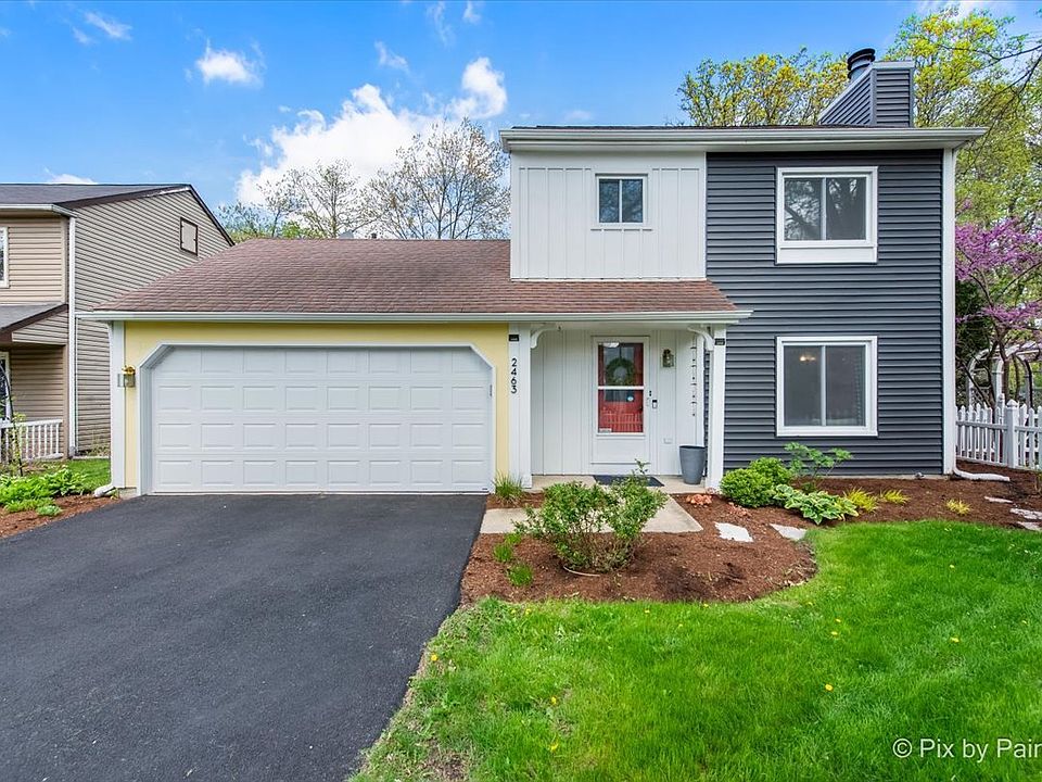 Welcome to this beautifully updated, move-in ready home on a quiet cul-de-sac in a friendly neighborhood. Built with energy-efficient 2x6 construction, it offers superior insulation for year-round comfort and quiet. Inside, a 2020 remodel brought new energy-efficient windows, updated flooring, fresh paint, and fully renovated kitchen and baths. The kitchen features new cabinets, countertops, and a butcher block peninsula, while the baths include new tile, vanities, and fixtures. Second-floor laundry adds everyday convenience. The private backyard is fully fenced and beautifully landscaped, with mature trees, a newer deck (2019), and a large steel shed. A chain-link rear fence opens to views of Big Woods Forest Preserve. Additional updates include a high-efficiency furnace and AC (2018). With no HOA fees and a location near parks, Metra, I-88, Route 59, shopping, dining, and award-winning District 204 schools, this home offers the perfect blend of comfort and convenience.