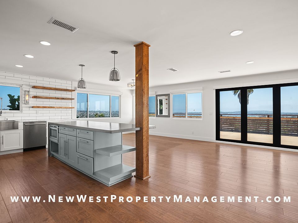 Exquisite Pacific Beach 4 bedroom located on a quiet cul-de-sac in the coveted Floral Terrace community offers magical views to sweep you off your feet! Enter through the dramatic front door, composed of a single piece of pivoting glass, to captivating panoramic ocean and bay vistas. Open floorplan on the main level is perfect for cooking, dining, and entertaining. Step through the 15ft folding doors which function to bring the outside in, and open to a massive deck spanning the entire length of the home. Dine al fresco or relax while taking in the coastal sunsets and cool ocean breezes overlooking Downtown, the Coronado Bridge, Mission Bay, and the SeaWorld fireworks spectacular! Or if you prefer, sip a cocktail from the wet bar and relax in the cozy lounge area. This beauty is reserved for those discriminating individuals seeking a luxury residence in one of San Diego's most desirable neighborhoods. The pristine interior boasts quality features including fresh paint, new carpet in the bedrooms, recessed lighting, and ample storage throughout. Enjoy stainless steel appliances, custom cabinetry, and a large eat-at bar in the gourmet kitchen. The dual primaries, one on each level, include en suite baths, walk-in closets, and private decks accessible by French doors. For a seamless, environmentally conscious lifestyle (and reduced utility costs!), the home boasts a 50 panel Tesla solar system plus 3 Tesla Powerwall batteries, for a total capacity of 45 KWh, along with dual-zone HVAC systems controlled by Nest thermostats. Additional smart home features include Lutron RadioRA2 with 22 motorized blinds, Lutron smart switches to control lighting, and Ring front door camera. Enjoy all that Pacific Beach has to offer, including sparkling beaches, Crystal Pier, and a myriad of dining, shopping and entertainment options. 2-car garage and weekly landscaping included. Small pet may be allowed with restrictions and additional deposit on a case-by-case basis. This is an unfurnished rental, one-year minimum lease term required. Available for occupancy December 19th.