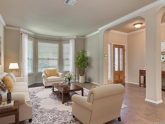 Fantastic curb appeal in Walnut Pass with a THREE car garage! Come fall in love with the high ceilings, natural light, three living areas, and spacious backyard! This 3 bedroom 2.5 bath home is a delight! Lets start with the kitchen which includes numerous cabinets, plenty of workspace on the granite countertops, tile backsplash, gas cooking, and so much more! Then the spacious family room that's drenched in natural light! The backyard is so green and peaceful...with so MANY trees. From oaks to fruit trees and crepe myrtles! Plus, lets talk about the dream garage! Space for three cars or use the tandem space as a workshop! It already comes with a workbench AND another garage door that opens into the backyard! Think about the possibilities for parties or just ease of working in the backyard. This home truly has it all plus great schools, shops, and restaurants. Near I-10, 1604, La Cantera, the Rim, USAA! You don't want to miss this gem!