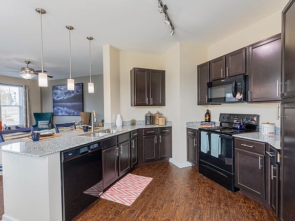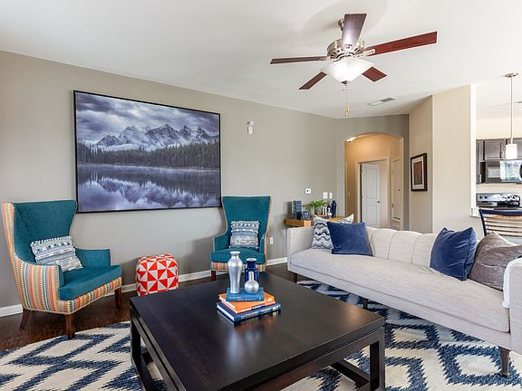 - Exterior features: Availability 24 Hours, Barbecue, Carpeted Bedrooms, Clubroom with Fireplaces and TVs, Coffee Bar, Conference Room, Courtyard, Designer Light Fixtures, Free Weights, Garden, Gourmet Kitchens with Black Appliances, Granite Countertops, High-speed Internet Ready, Nine-Foot Ceilings, On-Site Maintenance, On-Site Management, One-, Two-, and Three-Bedroom Apartment Homes, Oversized Closets, Pet Park, Private Patios and Balconies, Sundeck, Wood-Inspired Plank Flooring