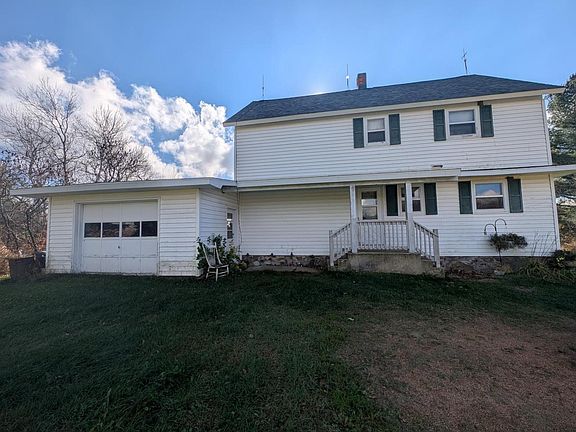 A solid traditional 2 story farmhouse with private 35.48 acres (mol), 5-6 acres cropland, some woods that include pines, maple, tamarack and some marshy areas. Great hunting land off a main highway and close to Medford, Wausau, and Merrill. The house has an open concept kitchen and dinette, large living room, 3 nice size bedrooms, 1.5 bath, full unfinished basement. Attached 1+ car garage that is insulated and finished plus a pole shed/barn, 37 'x 77' has a tin roof, 4 parking stalls, a workshop area and a second floor. Shed was previously an antique shop and has electricity that is disconnected. Extras include stove, refrigerator, washer, dryer. Lots of natural light, original hardwood floors on upper level, kitchen pantry and a built-in bookcase. Updates and replacements include vinyl siding - 2012, gas furnace - 2015, windows in living room and roof shingles were replaced - 2024, water heater - 2025, 100 Amp service. Older conventional septic and drilled well. This property is being sold "as is".