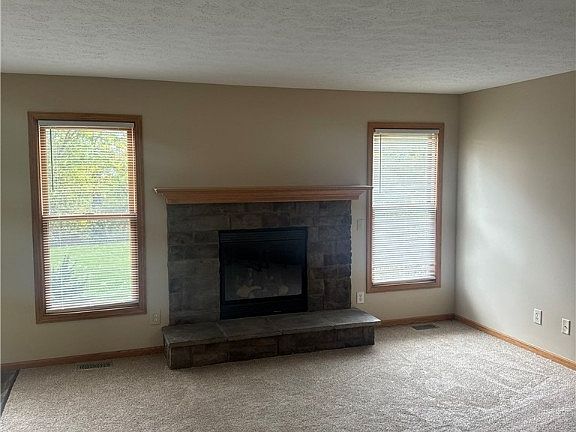 Step into the backyard and enjoy an open, spacious setting with a concrete patio, ideal for family gatherings and entertaining friends. Inside, the living room features a beautiful fireplace and flows seamlessly into the dining area and kitchen, offering an open concept feel.