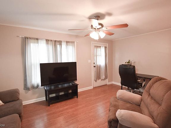 Well maintained 2 bedroom, 2 full bath ranch on a large corner lot with a fenced backyard! Step inside the spacious living room with a ceiling fan and crown molding. Arched doorway to the kitchen with new flooring, painted cabinets, new refrigerator and space for dining. Down the hall, there are 2 bedrooms with hardwood floors and an updated full bath with a new commode, new vanity, sink and flooring! Bedroom 1 has two closets and attic access. The lower level offers a finished bonus room and a full bath with a pedestal sink. An enclosed porch offers access to the fenced backyard with a firepit! Extras include an updated electric box, door bell, light fixture and replacement windows. 1-car detached garage and off-street parking. Move-in ready home - don't miss out!
