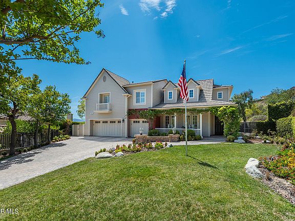 Sensational Sunset Ridge view home. The perfect cul de sac location on a premium lot. Picturesque views from every room. 6 bedrooms + 6 baths, approx. 4,340 sq. ft. The downstairs bedroom has an ensuite bath and can easily be used as a home office with French doors to the lovely courtyard setting. The step-down formal living room has three sets of French doors to the front porch. Gorgeous and spacious gourmet kitchen with Themador stainless appliances, butler's pantry and a charming breakfast room. Formal dining room is perfect for entertaining family and friends. Upstairs is the stunning primary suite with 4 additional bedrooms upstairs with ensuite baths and walk in closets. Desirable study/computer niche outside of the secondary bedrooms. The solar powered system provides efficiency and cost savings. Pre-wired security. Surround sound in & out. Pre-plumbed for central vacuum. The exceptional rear yard features an amazing entertainment space with pool with slide, spa, BBQ cooks' center and dog run. Award winning Conejo Valley schools. Close to everything wonderful Thousand Oaks has to offer; great dining, shopping, civic activities, great parks close by. Easy fwy. access. A wonderful community to call home! Southern California living at its BEST!