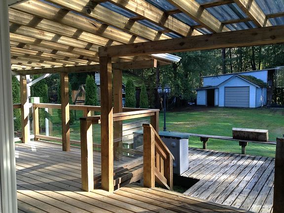 Beautiful 2,400 sq ft rancher on a 34,000+ sq ft lot! Features a large white kitchen with wood counters & undermount lighting, open family/dining area with wood stove, and a private covered deck. Main level has 2 beds/1 bath; downstairs offers 2 more beds, 1 bath, and an unauthorized kitchen—great for extended family or income potential. Upgraded electrical, vinyl windows/siding, metal roof. Tons of parking plus RV parking. Space, privacy & value all in one!