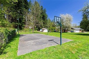 Expansive Yard: A dream outdoor space with a sport court, RV and boat parking, and a shed for extra storage.