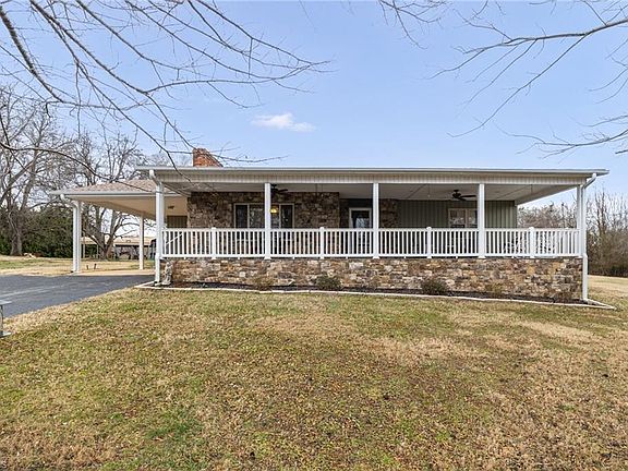 Charming 2-bedroom, 1-bath home situated on over an acre of land, offering space, comfort, and versatility. This inviting property features an open floor plan with a spacious living room showcasing a beautiful stone wood burning fireplace and custom built-in shelving. Warm wood flooring flows throughout the main living areas, creating a cozy and welcoming atmosphere. The eat-in kitchen has a beautiful backsplash and SS Appliances while offering ample cabinet space and room to gather, while the dedicated laundry room includes additional storage for added convenience. Enjoy outdoor living from the covered rocking chair front porch or relax on the covered flagstone patio in the backyard. The property also includes an attached carport, an additional carport, and a separate detached finished area —perfect for visitors, extended family, or game room. A rare find with both charm and functionality in a serene setting. Move In ready! Call today to schedule your appt.