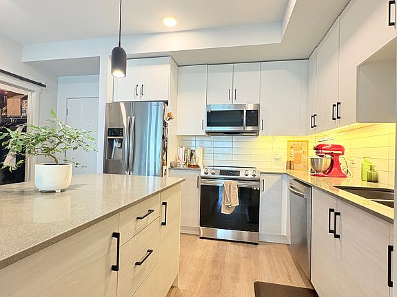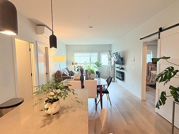 Private entranceOpen living spaceCozy electric fireplaceElegant barn doorsQuartz countertopsSleek finishesGenerously sized bedrooms