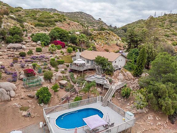 Custom ranch with spectacular sunset views from this Granite Hills Estate. Entertainers single story dream with remodeled kitchen and Great Room. On 1.69 landscaped acres features 4 bedrooms, spacious Bonus Room and two remodeled baths. Wonderful country views from the view decks, a detached workshop or art studio, excellent well water with 4,800 gallon water tank services house, pool and landscaping. Private country living, yet freeway close. Room for your RV, Horses and ADU (secondary unit).