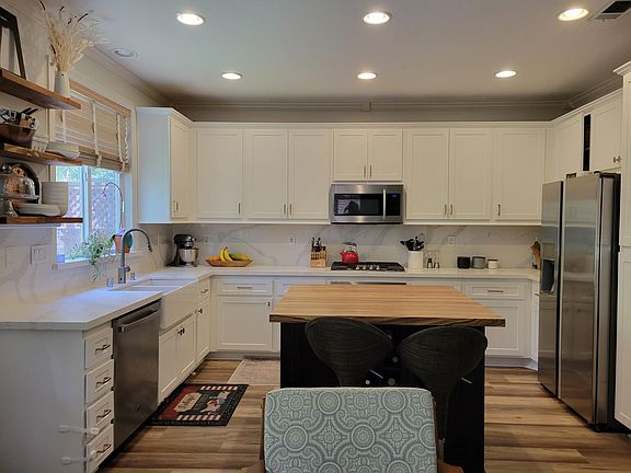 Rarely available 'Bixby Ridge' 3 bedroom model. Located on a quiet, private cul-de-sac. Incredible attention to detail throughout this amazing home. Soaring cathedral ceilings in the living/dining room accented by crown molding throughout the entire home. Beautiful hardwood floors in every room on the lower level. Wonderful upgraded kitchen with tiled counters and a unique center island with a wood counter and wine storage! Stainless appliances complete this beautiful 'chef's' kitchen.This is the most popular 3 bedroom model with a huge closet in the master suite. Newer, high quality carpet in all the upstairs rooms. Ceramic tiled flooring in all the bathrooms. Secluded, private, romantic rear yard. Wood shutters throughout the home and expensive custom window casings on all windows. There is an attached 2 car garage with additional custom cabinets that complete this amazing home!