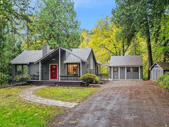 Beautifully maintained and full of character, this turnkey home sits on nearly one acre at the end of a private drive, backing to serene green space in the heart of coveted West Slope. Offering a rare blend of privacy, charm, and convenience, this property has been thoughtfully updated throughout. Interior features include a spacious primary suite with ensuite bath, an open-concept living area with a wood accent wall and cozy fireplace, a dedicated laundry room, and central heating and cooling. The detached garage and workshop provide excellent storage or potential for creative use. Step outside to enjoy walking trails and an expansive deck overlooking peaceful wooded surroundings with no neighbors in sight. Recent updates include a brand-new roof, new interior and exterior paint, luxury vinyl plank flooring throughout, new carpet, a brand-new electrical panel, newer HVAC system, and new stainless steel appliances. Experience the tranquility of a private, wooded setting while still enjoying the convenience of nearby Portland amenities—plus the advantage of lower Washington County property taxes. This unique property also offers excellent development potential with nearly an acre of land and R-5 zoning. Options include converting the garage/workshop into an ADU, adding an additional dwelling or duplex, or creating a multi-generational living setup. Come see all the possibilities this exceptional home and property have to offer! OPEN HOUSE THIS SATURDAY, 11/1 1PM-4PM!