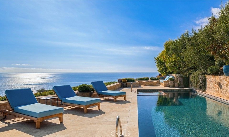 Discover unparalleled luxury in this exquisite French Country-style estate crafted by renowned builder Paul Brant Williger and featured in Luxe Magazine and two HBO productions. Nestled in a prestigious enclave (soon to be part of a gated, fire-wise community) this architectural gem blends breathtaking ocean views over Little Dume, with world-class amenities and impeccable craftsmanship. A stone-arched entryway invites you into a world of sophistication and timeless grandeur, as you are greeted with soaring vaulted ceilings, reclaimed French oak floors, and antique wood beams. The living room is anchored by a French antique wood-burning fireplace that seamlessly connects to the outdoors. The adjacent great room charms with a cozy firewood nook. The chef's kitchen is a culinary masterpiece featuring a sprawling quartzite island, Caesarstone counters, and premium appliances (6-burner Wolf range, Wolf microwave, Miele dual dishwashers, Sub-Zero refrigeration to name a few). The formal dining room captivates with a fireplace, wood-beamed vaulted ceilings, French tiles, and sweeping coastline vistas. A nearby powder room impresses with French tile floors, floating sink imported from France, and bespoke lighting. The primary suite offers ocean and pool views, a vaulted ceiling, walk-in closets, and fireplace, and sliding doors to the lush backyard. Its spa-inspired ensuite boasts mosaic tile floors, stone counters, double vanity, walk-in shower with a marble bench, and an in-ground soaking tub framed by elegant French windows. A converted garage serves as a versatile office or gym, complete with skylights, and French doors opening to the garden. The laundry room includes built-in storage, washer and dryer, and a wine fridge. The backyard is a private paradise, showcasing panoramic ocean views, a rectangular pool with an integrated hot tub, a fire pit with a custom-built couch, and a tranquil waterfall. A covered outdoor dining area, equipped with infrared heaters and an exterior fireplace, ensures year-round enjoyment. Hand-finished French slip-resistant limestone elegantly paves the yard. Uncompromising craftsmanship defines this estate, from imported antique doors to a handmade Tuscan tile roof. Modern conveniences include ultra-sound-resistant glass windows and sliders, push-button automatic shades, a whole-home generator, three-zone climate control, and a comprehensive security system.