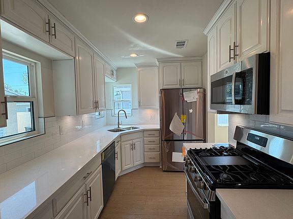 Totally remodeled, new paint, new appliances, new laminat flooring, new windows, new reccessed lightings, new bathroom, and inside washer/dryer hookups. There is no garage and back yard, street parking only. Tenants are responsible for Electric, Gas, Intermet, Cable. Landlord pays for water. One year lease,