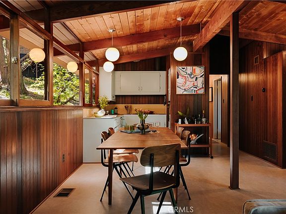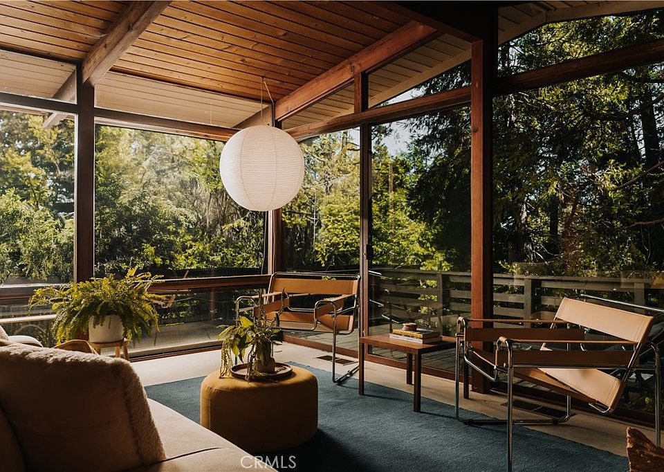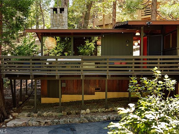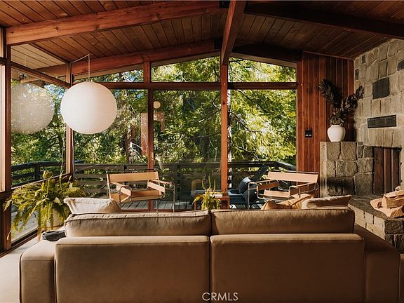 Mid-Century Holiday Retreat in the Pines – San Moritz, Crestline A rare opportunity to own a true mid-century gem tucked among the towering pines of Crestline’s sought-after San Moritz neighborhood. Built in 1956 and thoughtfully updated, this architecturally distinct cabin blends classic design with modern sophistication—creating a retreat that feels both timeless and luxurious. Set back from the road on a generous, tree-filled lot, the home’s open-concept interior is bathed in natural light through floor-to-ceiling windows that span two walls, blurring the line between indoors and out. The surrounding forest becomes a living backdrop, creating the serene sensation of being immersed in nature—even while inside. The original stone fireplace anchors the living space, while the spacious deck extends the experience outdoors, perfect for entertaining or quiet mornings among the trees. Every detail has been carefully curated—from eco-friendly Marmoleum flooring and updated electrical with a new panel to a brand-new central heating and air system. Smart features include a Nest thermostat and Ring security system for effortless comfort and peace of mind. Two beautifully appointed bedrooms and a versatile bonus room provide space for guests, a home office, or creative pursuits. Located just three minutes from Lake Gregory and moments from Crestline Village shops and dining, with Lake Arrowhead only 14 minutes away and Los Angeles under 90 minutes, this property offers an ideal balance of privacy and accessibility. A proven 5-star Airbnb, the home is offered fully turnkey with designer furnishings—ready to enjoy immediately as a refined mountain retreat, vacation rental, or full-time residence.