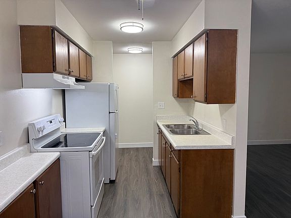 This corner two-bedroom, one-bathroom apartment home boasts plenty of afternoon light! It features a large dining area, spacious living room, and an XL master bedroom closet. The galley style kitchen features full-size appliances, a smooth top stove and vinyl flooring throughout the kitchen and living space. Both bedrooms feature carpet, and large closets with plenty of storage. Come tour your new apartment home today!