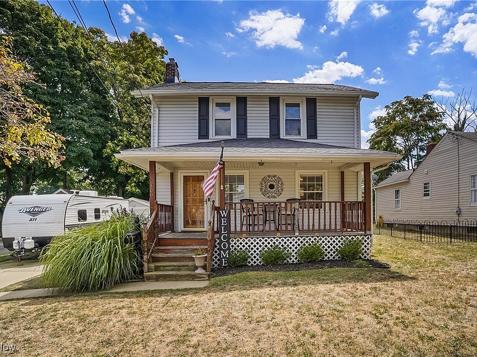 Spacious 4 bedroom colonial in Ellet! As you visit the property, you'll notice the beautiful front porch is a welcoming extension of this lovely home, and perfect for relaxing or entertaining! Living room features a fireplace and carpet. Kitchen offers lots of space and storage, and is equipped with refrigerator, range, microwave, and dishwasher. Laminate flooring and unique built-ins located in the dining room. The bonus room located off the kitchen has wood floors and could be used as an additional bedroom, playroom, or office. Upstairs you'll find 4 bedrooms (2 of them with carpet and 2 of them with hardwood floors), along with a full bathroom. The full basement has glass block windows and a laundry area. Fenced back yard with concrete patio and shed. Furnace is approx 6 years old, and the home has a new roof with transferable warranty as of April 2025! Schedule your showing today!