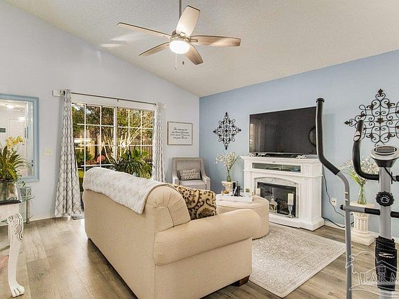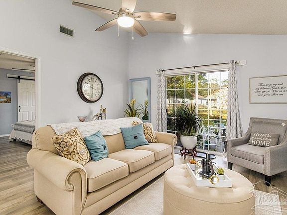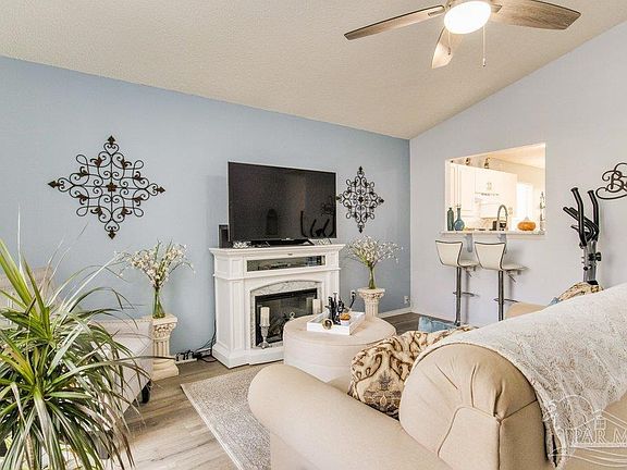 One look at this immaculately maintained home and you'll fall in love! As you enter the cozy foyer you will immediately notice great amenities and updates throughout that include a soothing color pallet, and wide plank luxury vinyl flooring. This home is inviting and has a functional, 3 bedroom, 2 bathroom floorplan. In the kitchen you'll find white cabinetry, a beautiful glass stone backsplash, resurfaced epoxy countertops and a breakfast nook with a bay window. The great room has vaulted ceilings, is spacious and overlooks the backyard oasis/sitting area. A large master bedroom with a spacious en-suite features a shower/tub combination with dual vanity sinks and his/hers closets. Additional bedrooms are generous in size and share a bathroom that has been upgraded to match the finishes throughout the home. Other features include roof 2021, stove 2022, HVAC 2017, Water Heater- 2022 Situated off Gulf Beach Highway in an established subdivision, this home has an ideal location close to Navy bases, Perdido Key's beautiful beaches, shopping and down-town Pensacola. Schedule your showing today!!
