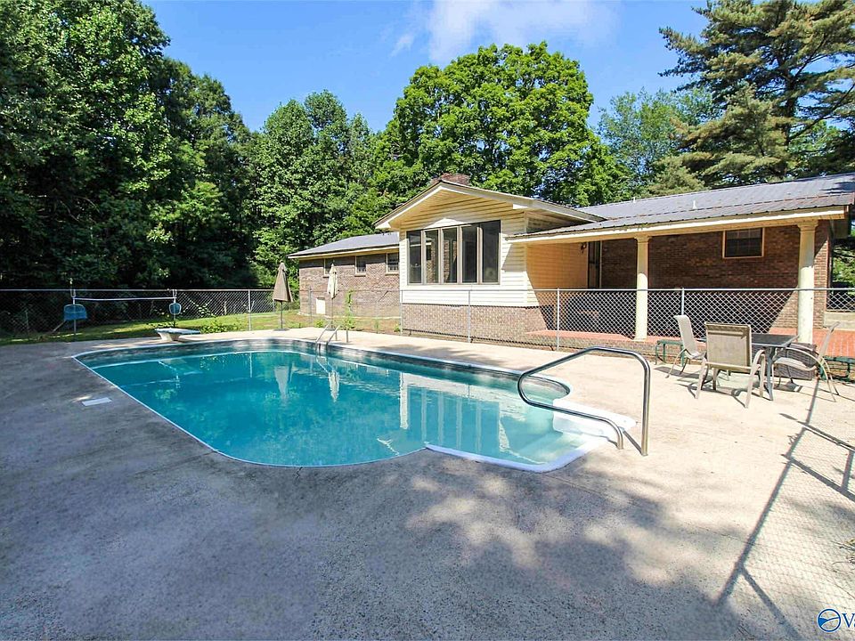 Surrounded by nearly 5 acres of beauty and ancient trees, this 3BR/2BA home is made for family connection and fun. The backyard is a dream with an inground pool just steps from the kitchen and a huge covered patio perfect for cookouts and laughter. Inside, sunlight fills the dining room with its walls of windows, and a flex room offers space to make it your own. To top it off, there is an additional septic and water hook-up on the far left side of the paved circle drive! It needs a little vision and a few updates, but the heart of this home shines warm, welcoming, and ready for its new family!