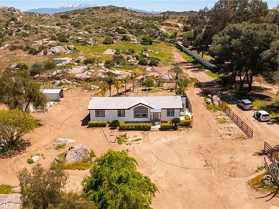 Beautiutiful 3-bed, 2-bath manufactured home nestled on over an acre in Homeland, CA. Built in 2006, this home boasts an updated kitchen with elegant white cabinets and gold hardware, complemented by laminate wood flooring and modern baseboards. Freshly painted inside and out, with new light fixtures throughout. Enjoy tranquility in this quiet locale, perfect for accommodating your toys and animals.