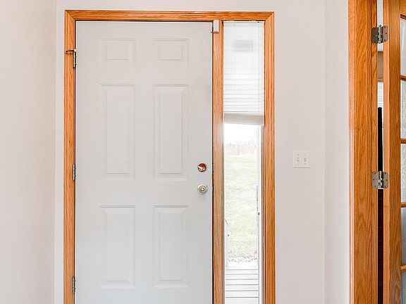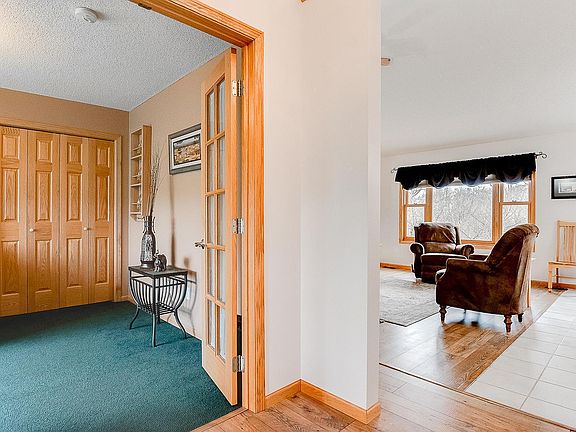 Meticulously maintained rambler located on a peaceful 2.5 acre lot surrounded by nature. Main floor features a spacious entry, kitchen/dining room with plenty of cupboards and cabinets, living room with gorgeous brick gas fireplace, 3/4 bath, large laundry room, 2 bedrooms including master with private master bath, large walk-in closet and walk out to deck overlooking the pond. Lower level features a family room, amusement room that walks out to the backyard, two spacious bedrooms, full bath, storage and utility room. Updates include water softener, furnace & AC, water heater, lower level walkout patio door, main floor bedroom window, and master bath large window. Additional features include fresh paint, front yard stamped patio, deck, patio and fire pit in backyard, beautiful landscaping, gardens, insulated and heated oversized garage, and shed. Enjoy nature and the most gorgeous sunrises and sunsets ever right from your home. Hurry on this one, TURN KEY and CLEAN!