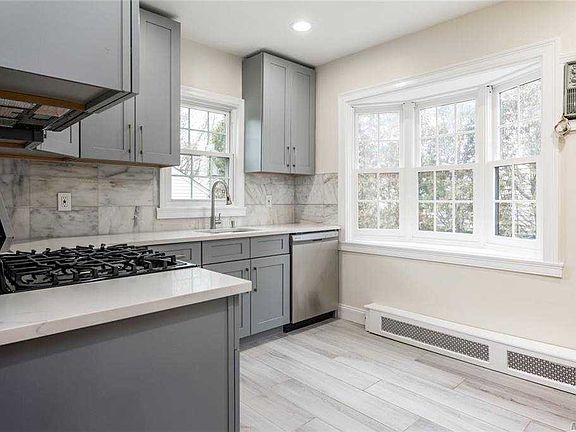 Welcome to this beautifully renovated 3 Bedroom, 2 Bath Colonial. The designer kitchen & Dining Room open onto a new deck which overlooks the yard & patio. The basement is recently refinished with a bath, utility/laundry room & ample storage. There is a long private drive leading to a detached garage. Although it is located on a quiet block it is close to local shops and provides easy access to the Cross Island Pkwy & Hillside Ave. School District 26, one of the be