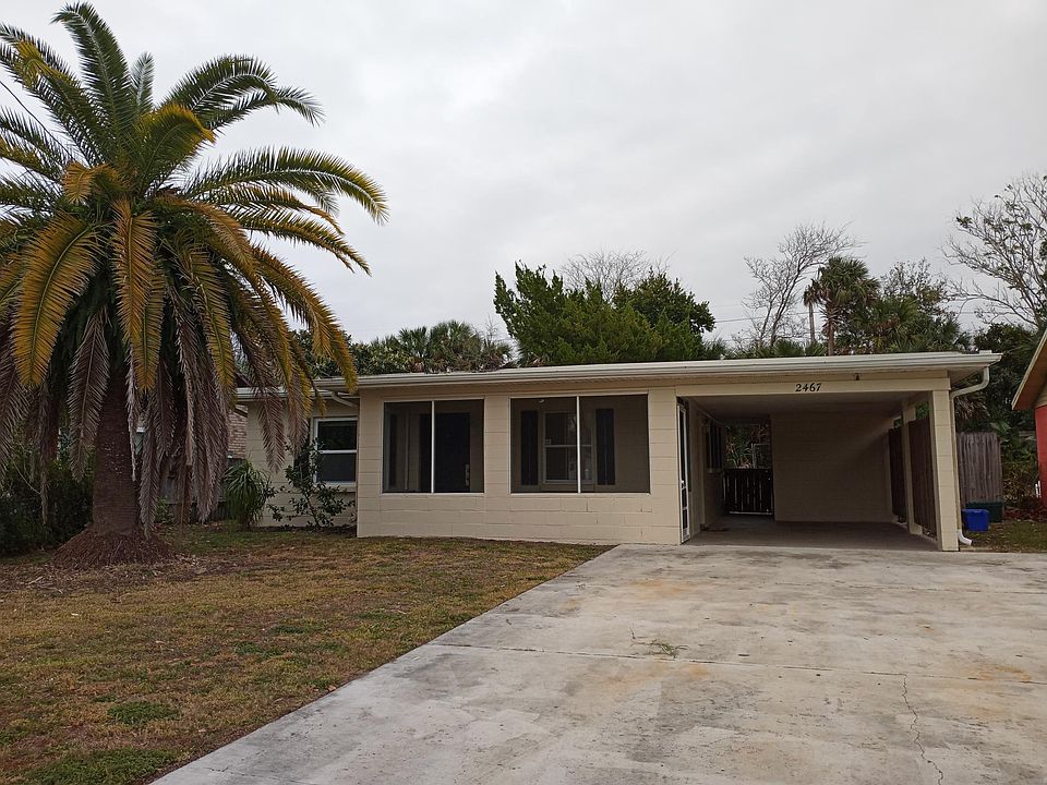 Discover this inviting single-family home, adorned with tile flooring throughout, located just an 8-minute drive from the stunning Daytona Shores beach access. The generous backyard is perfect for outdoor enjoyment, complemented by a charming screened front lanai for serene relaxation. The property features a covered carport for one vehicle, with ample driveway space for 1-2 additional cars, and a practical separate outdoor laundry room. Situated in a sought-after neighborhood near Publix, this home offers easy access to iconic attractions like Daytona Speedway, pristine beaches, and a wealth of local amenities, effortlessly combining comfort and convenience. Notably, this rare gem remains flood-free during hurricanes, providing peace of mind in this coastal area.