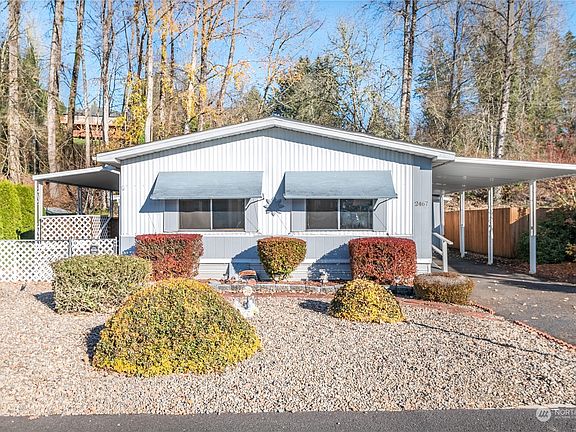 If you’re seeking a welcoming 55+ community, Brookhollow in Kelso is an excellent choice. This well-maintained MFH park fosters a supportive neighborhood where residents look out for each other. This charming double-wide manufactured home features a newer roof and low-maintenance landscaping. Step inside to find brand-new carpet, two comfortable bedrooms, and two bathrooms, including a primary suite with an en-suite bath. The kitchen offers plenty of counter space, perfect for meal prep. Enjoy your mornings or entertain guests on the covered porch. Additional perks include two storage sheds and a single-car covered carport. Your next home awaits!