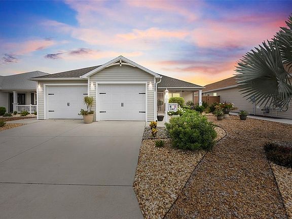 PRICE IMPROVED!! Welcome to this beautifully appointed Melrose model villa nestled in the highly sought-after Village of DeSoto in The Villages, Florida! This exceptional 3-bedroom, 2-bath home combines comfort, quality, and convenience—perfect for those ready to start enjoying The Villages lifestyle immediately. Every inch of this home has been meticulously maintained and thoughtfully upgraded to create a truly move-in-ready residence. From the moment you arrive, you’ll notice the home’s excellent curb appeal. The exterior showcases enhanced landscaping with decorative stone, mulch borders, and manicured plantings, beautifully highlighted by LED soffit lighting that adds charm and security in the evenings. A screened front lanai with dual ceiling fans creates a welcoming first impression and a perfect place to sit back and enjoy your morning coffee or greet neighbors. Step inside and you’re immediately greeted by a spacious open-concept floor plan designed for both everyday comfort and effortless entertaining. The main living area features vaulted ceilings, crown molding, plantation shutters, designer lighting, and ceiling fans in every bedroom and living space for year-round comfort. Large sliders open to a screened rear lanai, which overlooks a private fenced yard—ideal for pet owners, outdoor dining, or simply relaxing in peace and privacy. The home has been freshly painted in tasteful designer colors, adding to its bright, airy, and modern feel. The kitchen is the heart of the home and a true highlight. It boasts gas appliances, a walk-in pantry, plentiful cabinetry and counter space, and an open bar area perfect for casual dining or entertaining guests. Whether you’re preparing family meals or hosting friends, this kitchen offers both functionality and style. The adjacent dining area flows seamlessly into the living room, creating a warm and inviting environment ideal for gatherings and conversation. The primary suite is a private retreat featuring a tray ceiling with crown molding and accent color, a spacious walk-in closet, and a luxurious en suite bath. The bath includes a Roman walk-in shower, double vanity sinks, and elegant finishes that make it feel like a personal spa. Guests will feel right at home in the two additional bedrooms. One guest room features a custom built-in office workstation, offering flexible use as a home office, hobby room, or cozy den. The third bedroom is perfect for visitors, and both share access to a beautifully finished second full bath conveniently located off the hallway. Additional highlights include natural gas heating, a full two-car garage with ample storage, dual ceiling fans on both the front and rear lanais, and low-maintenance exterior finishes designed to keep upkeep simple. Living in the Village of DeSoto means you’re in one of the most desirable and active areas of The Villages—just minutes from Magnolia Plaza, Brownwood Paddock Square, and the new Eastport Town Square currently under development. You’ll be near shopping, restaurants, recreation centers, walking trails, golf courses, and more. This exceptional home truly represents the perfect blend of beauty, functionality, and low-maintenance living, offering the ultimate opportunity to enjoy everything The Villages has to offer. Schedule your private showing today and see why this Melrose model villa stands out above the rest. Realtor is the owner.