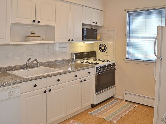 Peaceful calming views 2nd floor with no buildings across.NYC skyline views.Totally Level Parking directly in front.Near pool/fitness.Updated kitchen & bath. D/W.Wood under carpet.Incl: Gas HWBB heat. Available now.