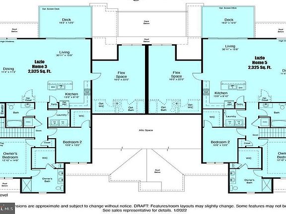 The Lazio entry is also from the side porch or one car garage. It opens into a foyer with stairs or elevator to the third level where your main living space is located. Step off the elevator into your large Great Room, open to your L-shape Kitchen with island. A deck opens from your Great Room. Tucked away down the hall past the Kitchen you will find your Laundry Room, Owner’s Suite with private bath, Secondary Bedroom and Bath and stairs to the first and second levels. Flex Room is included — 3rd full bath and Walk-in Closet for Flex Space is included.