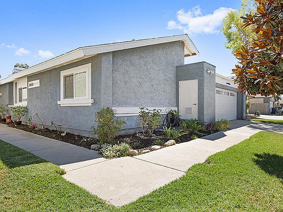 This lovely single story Orangewood tract home is ready for you! Featuring 3 bedrooms, 2 baths and an office/den with 1767 square feet of living space. Features include an upgraded HVAC unit, dual pane windows and sliders, and smooth ceilings. This home has a well-appointed front yard. As you enter this home you will notice wood like flooring and tile flooring through much of the house. The formal dining room has a coffered ceiling which includes the ceiling fan and a window which overlooks the atrium. The atrium is a great place to relax in the morning with your cup of coffee and good book. The living room has a ceiling fan, recessed lighting, vaulted ceilings, and sliders leading to both the rear yard as well as the atrium. The kitchen features stainless steel appliances, recessed lighting, a breakfast bar and overlooks the family room. The family room has a gas fireplace, vaulted beamed ceiling, a ceiling fan and a slider leading to the rear yard. As you walk down the hallway, you will find an office/den or even a possible 4th bedroom, The master bedroom features vaulted ceiling with ceiling fan and recessed lighting, two closets and a slider leading to the atrium. The master bath has recessed lights, dual sinks, a tile shower, and tub combination with a skylight for great lighting. Further down the hall you will find two additional bedrooms with ceiling fans and a full bath with upgraded vanity with dual sinks, custom tiled shower, and recessed lighting. There is also direct access to your two-car garage with laundry area. The rear yard has a concrete patio, raise gazebo type patio and a storage shed. This lovely home is located on a Cul-de-sac and is close to shopping, restaurants and has easy access to the freeway. With No HOA, this home is ready for you!