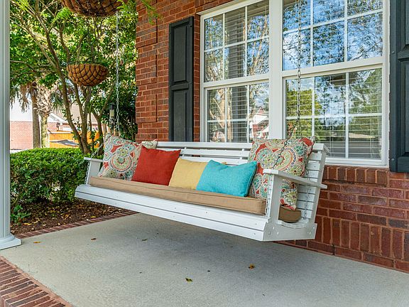 4-sided brick home w/ rocking chair front porch