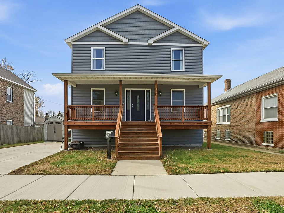 Look, kids -- it's a unicorn! In Whiting, finding a home that's only six years old is a rare treat, and this spacious two-story with a full unfinished basement is ready for someone to bring out its sparkle again. With just a bit of cosmetic freshening, this gem will truly shine. The charming front porch beckons you to come and sit a while. Step inside to an open, flowing main level with white trim, paneled doors, vinyl flooring, and a bright layout that connects the living room, dining area, and kitchen seamlessly. The kitchen is a standout: granite countertops, slow-close cabinetry, an island with inset microwave, Samsung appliances, and a generously sized pantry. The main-level primary suite is another major win, offering a private bath with a granite double-bowl vanity and a walk-in closet. Working from home or need more room? The main level also includes an office (or possible 5th bedroom), plus a powder room, and laundry with LG washer/dryer and laundry tub. Everything you need without ever heading upstairs. But if you do venture up, you'll find three additional bedrooms and another full bath with a granite double-bowl sink. The full basement with 9ft ceiling and rough-in for another bath provides endless potential-finish it, use it for storage, or both. Outside, enjoy a storage shed and extra driveway parking, with room to add a garage later if you'd like. To make this home even more irresistible, the seller is offering a contribution toward paint, carpet, or closing costs with a full-price offer-your chance to tailor the home to your taste from day one. A young home with this space, flexibility, and potential in Whiting doesn't come around often. Don't miss it!