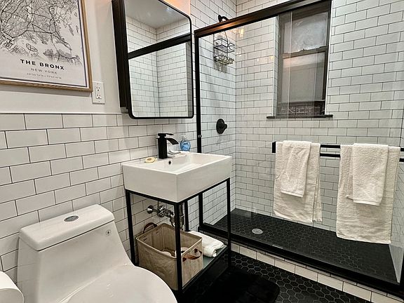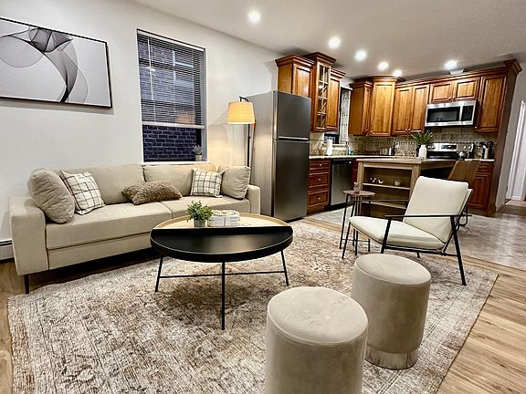 NO FEE. This newly renovated and fully furnished two bedroom has it all. In unit laundry, dishwasher, gorgeous open kitchen/living room concept and modern sleek furnishings. This unit is a short walk to Fordham University and offers proximity to campus with the benefit of Manhattan-style living. The bathroom has white subway tile and sleek black tile floor. The kitchen offers stainless steel appliances with a dishwasher and microwave above the stove. Best of all there is a yard shared with one other unit only for your use.