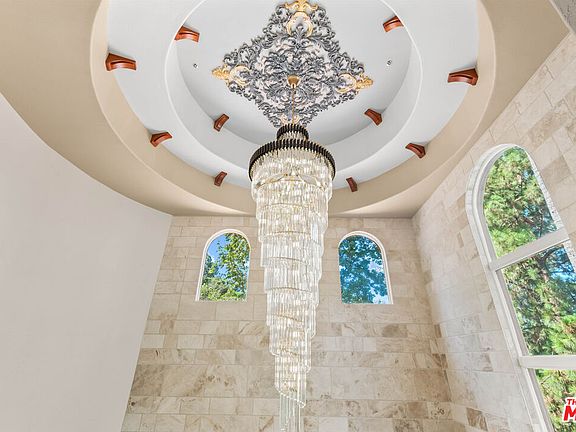 Step through the grand two-story entry with stunning chandelier, where soaring ceilings and architectural drama set the tone for the home. Adjacent living room invites both formal entertaining and intimate gatherings, while a conveniently located first-floor en-suite bedroom and private office offer comfort and flexibility for modern living. Upstairs, three additional generously proportioned en-suite bedrooms provide comfort and privacy. The primary suite is a true retreat, featuring expansive his-and-hers closets, dual private balconies, and a luxurious spa-inspired bath adorned with custom glasswork, a freestanding soaking tub, and a bidet. At the heart of the home, the chef's kitchen is a true showpiece, outfitted with top-of-the-line appliances, expansive counter spaces enabling efficient preparations for groups both large and small. Designed for culinary artistry the kitchen connects directly to entertaining spaces including the pool, covered outdoor loggia and a stylish bar, perfect for lively elevated entertaining or effortless smaller gatherings. Privately gated and set on a secluded flag lot quietly well distanced from Coldwater Canyon Drive, this estate has been completely re-envisioned and masterfully re-constructed over a two-year transformation, offering a rare combination of privacy, seclusion, and modern sophistication. The grounds unfold into a completely private backyard sanctuary with lush gardens, curated landscaping, sparkling pool and spa, and outdoor kitchen. Multiple covered lounges and al fresco dining areas overlook an intimate live-performance stage with professional sound perfect for private concerts and unforgettable gatherings. Bordered by acres of natural terrain and wildlife, the property feels worlds away while remaining uniquely convenient to both Beverly Hills as well as the Valley, with seamless access to world-class amenities. This is more than a home - it is an unparalleled lifestyle, a sanctuary designed for those who seek beauty, privacy, and distinction.
