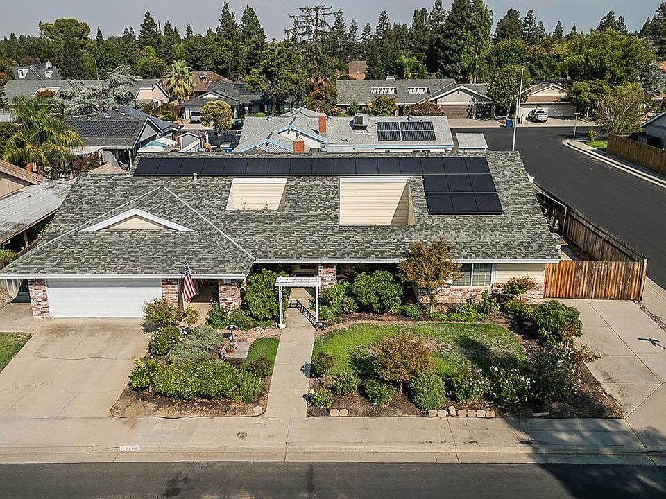 This well-maintained corner lot offers 2,210 sq ft of living space on a generous 9,000 sq ft lot. Featuring 4 bedrooms and 2 bathrooms, the home was tastefully updated between 2020-2021 throughout the home. The primary suite has been expanded for comfort (you must see it!), and two spacious living areas provide plenty of room for entertaining or relaxing. Flooring includes laminate, carpet, and pebble stone flooring. Custom-designed ceilings adds a touch of character throughout the home.The backyard is built for enjoyment with a 6 ft deep Pebble Tec pool, two covered patios, and a 7 ft fence installed just two years ago for added privacy. This property also includes 31 solar panels (loan approx. $238/month), RV capability, and negotiable items such as a 10x20 shop, fridge, washer, dryer, and movable carport. Seller carry is a possible option with a large down payment, making this a versatile opportunity. Virtual tour link is added, please request if you can't find it.