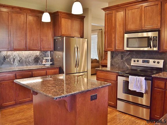 Accepted Offer with Contingencies. BETTER THAN NEW! Spacious home in a highly desired neighborhood and location! Home Features: An open grand entrance, spacious kitchen with plenty of cabinet space with an island, open living room, cherry cabinets and granite countertops in kitchen, SS Appliances, LARGE master suite with jet tub and double sinks, lots of storage, inside utility room complete with sink, covered back patio, fenced backyard, close to great schools, parks, and the Santiam River, plus SO MUCH MORE! Must visit to appreciate!