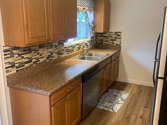 Neat and clean ranch style home on quite cul-de-sac in great Gresham neighborhood. Remodeled kitchen with newer flooring throughout. Garage converted to additional living space with family room and laundry area. Large beautifully landscaped lot with fruit trees and grapes. Close to schools, Mt Hood Medical and Mt Hood Community College.
