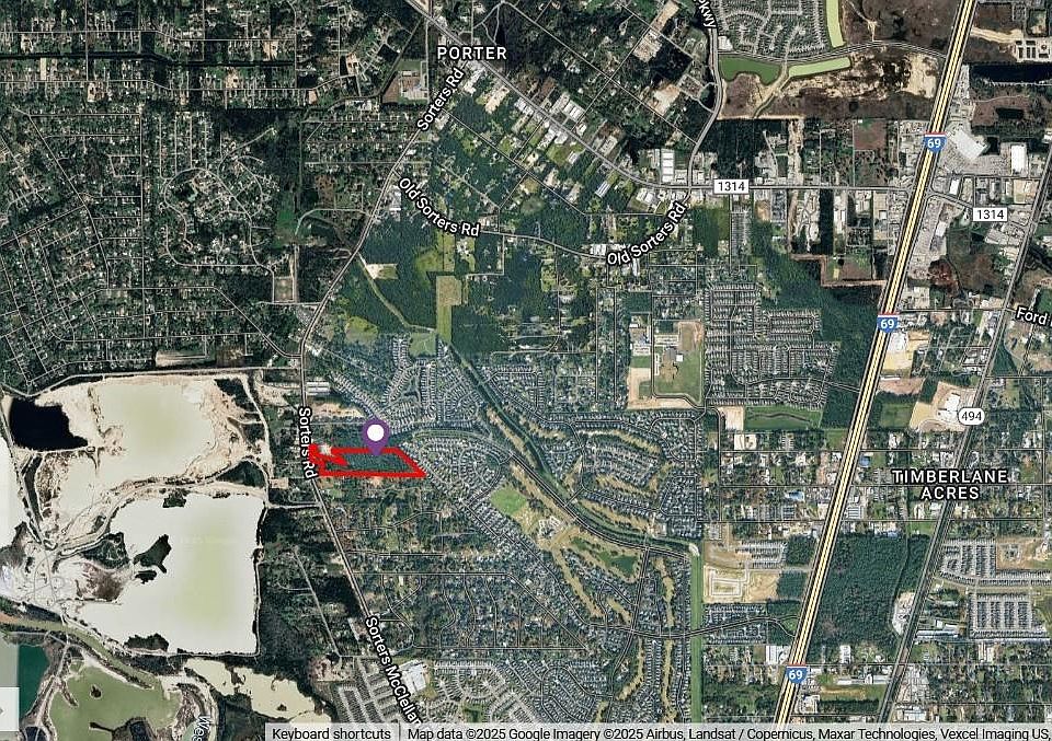 Great 19.47 acres on highly traveled Sorters Rd. Close to 59, 99 and not far from 45. FM 1314 is four lane and the beginning of Sorters is four lane (supposed plans to widen all the way to 59). No flood plain. Perfect for small subdivision, industrial buildings or anything commercial. 275 ft of frontage on Sorters. Has 2400 sf 45 year old house on property selling "as is". Could be fixed up. Rapidly growing area and won't last long.